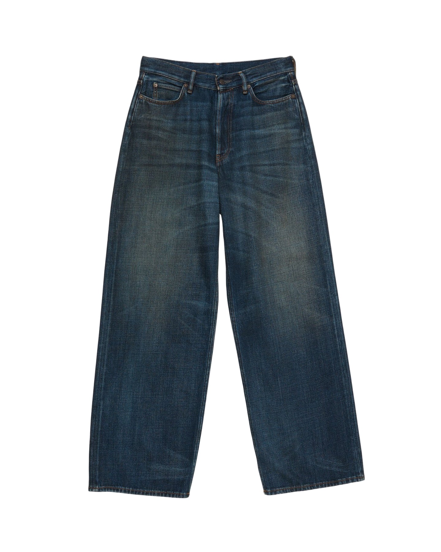 Jeans crafted from soft, intense indigo denim twill with natural whiskers and a dirty tint for a worn-in appearance. 1981 jeans are cut to a loose fit with a low to mid-waist, wide leg, and long length.