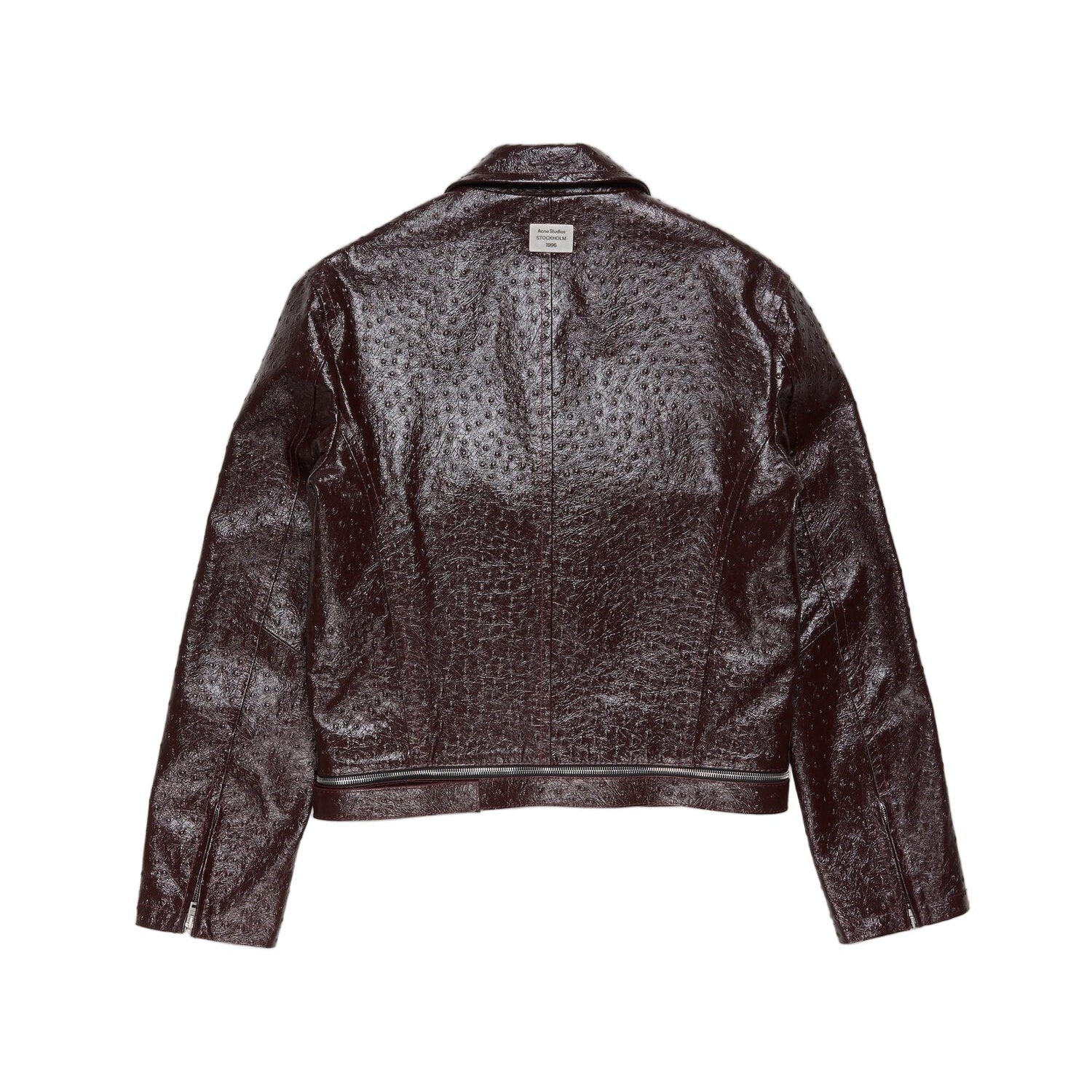 Leather jacket crafted from grained bubble leather with a shiny finish. Features patch pockets with a logo-embossed key zip, a two-way front zip closure, and a detachable, adjustable belt. Complete with zip openings at the sleeves and a metal Acne Studios logo plaque at the back neckline. Cut to a regular fit and hip length.