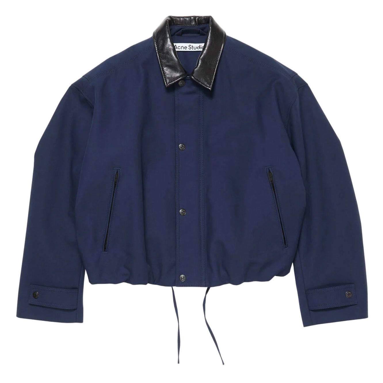 Jacket crafted from smooth cotton with a satin-woven double-layer structure, detailed with a contrasting faux leather collar and an Acne Studios leather logo patch at the back neckline. Cut to a regular fit and hip length.