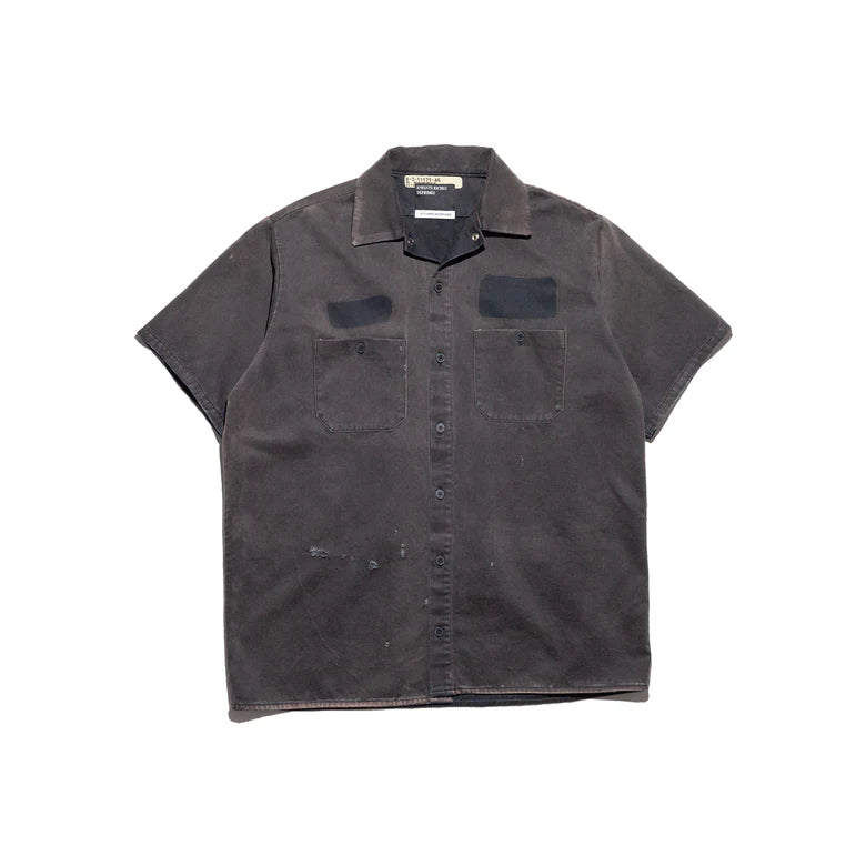 SHORT-SLEEVE WORK SHIRT IN JAPANESE COTTON TWILL. FRONT PATCH POCKETS. LOGO-ENGRAVED HORN BUTTON CLOSURE. DISTRESSING THROUGHOUT. SIGNATURE VINTAGE WASH PROCESS. MADE IN THE USA.
