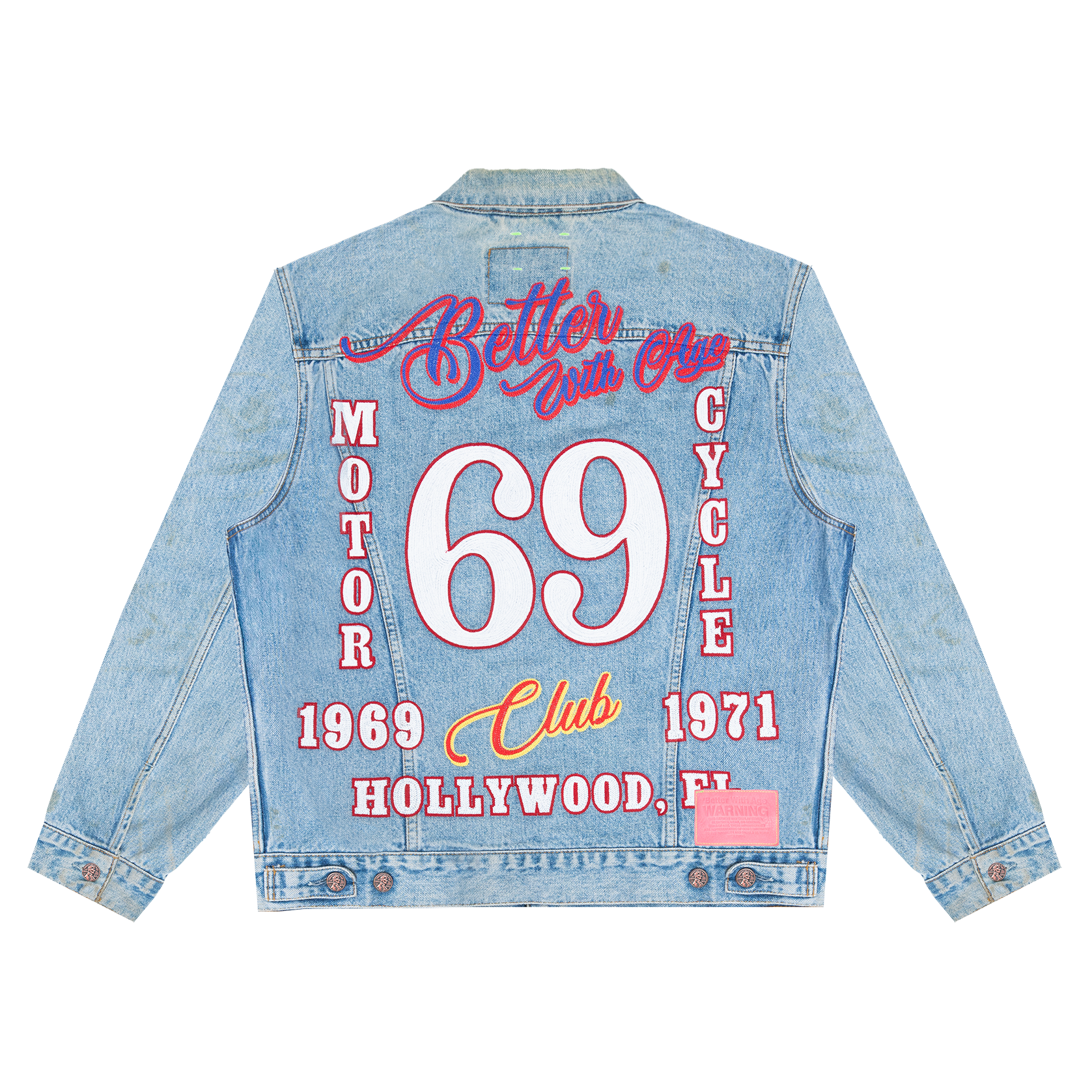 Each jacket is constructed using vintage Levi's denim jackets, embellished with screen printed and embroidered details.