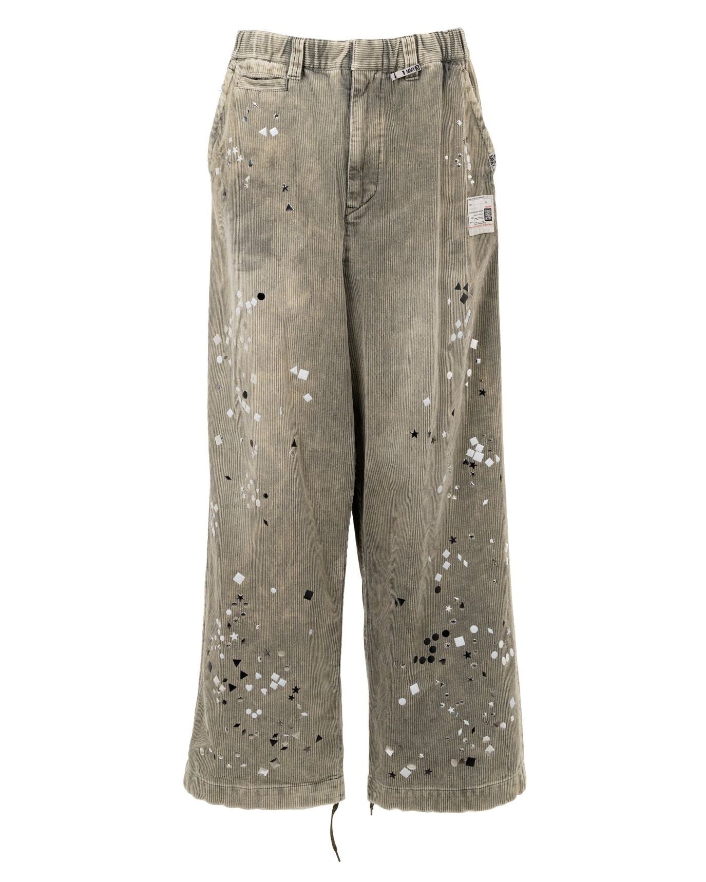 Corduroy pants with rhinestone decoration.Distressed finish for a worn-in look.Side and back pockets.Zip fly.Belt loops at waist.