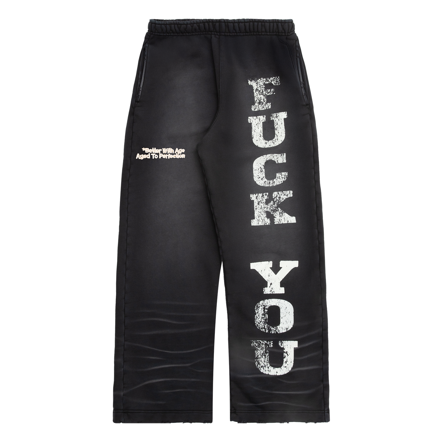 Buyer will receive a pair of sweatpants constructed from deadstock vintage fabrics. Features screen printed graphics and embroidered details. Fits true to size.
