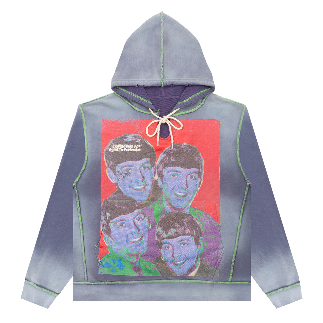 Buyer will receive a hoodie constructed from deadstock vintage fabrics. Features screen printed graphics and embroidered details. Fits true to size.