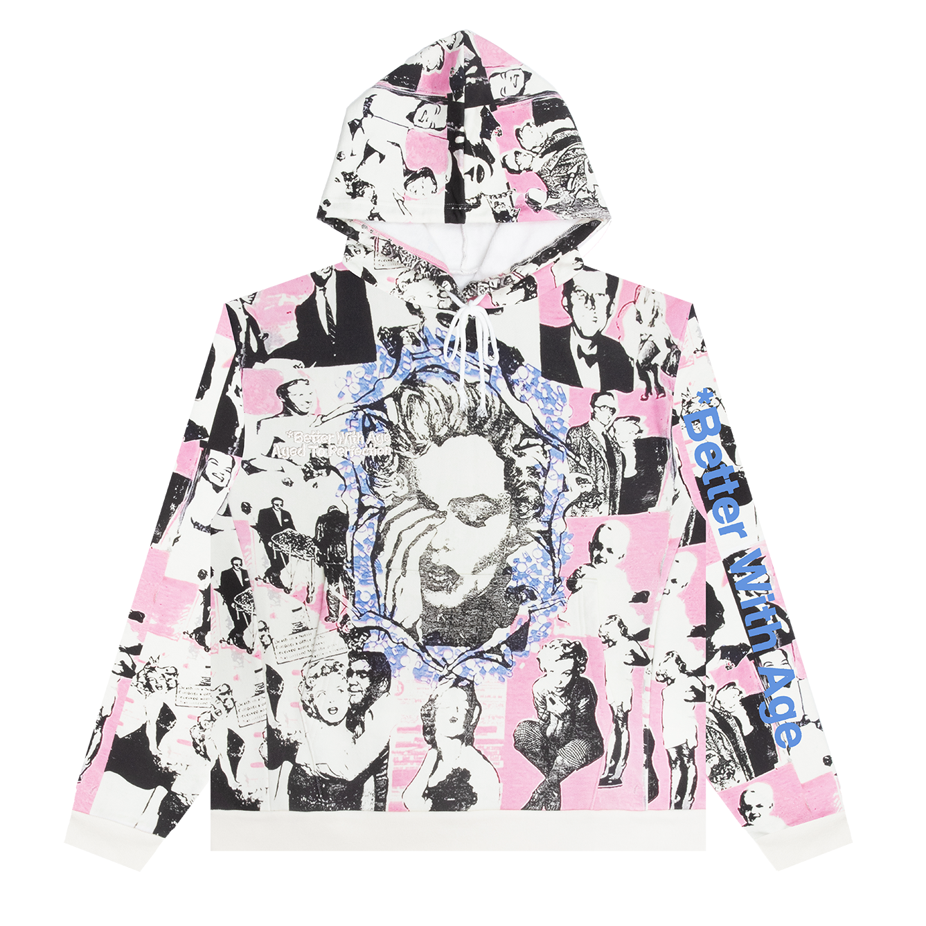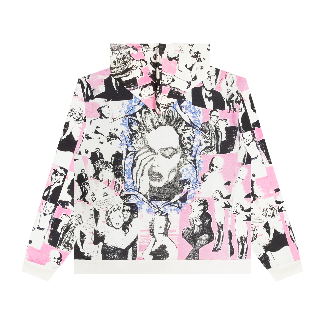 Buyer will receive a hoodie constructed from deadstock vintage fabrics. Features screen printed graphics and embroidered details. Fits true to size.