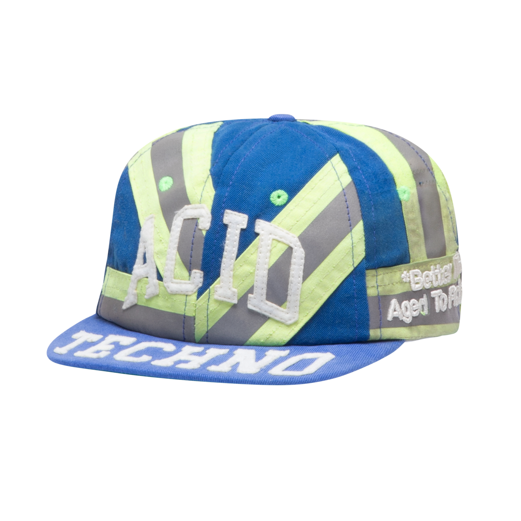 Buyer will receive a one-of-one random pattern hat featuring hi-vis fabrics and embroidered details.