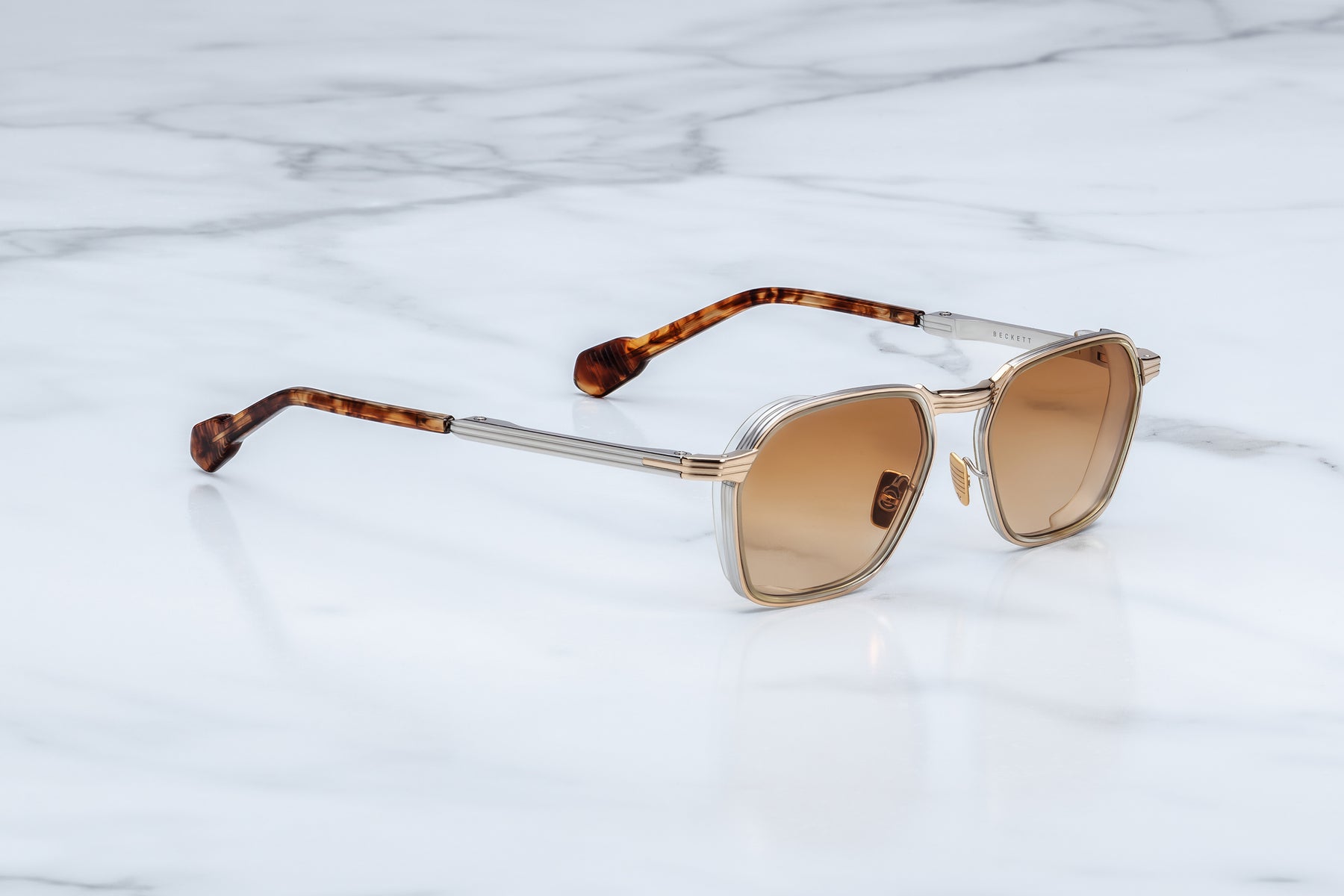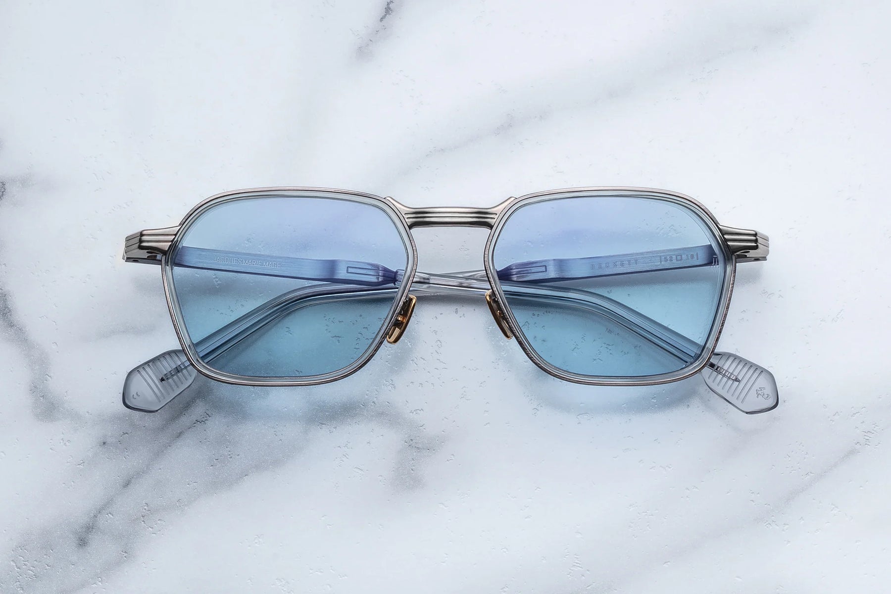An ascetic expression of ’70s intellectualism, these spectacles inspired by those worn by 20th-century literary legend Samuel Beckett evoke a world pared to its essentials—angular, articulate, and quietly unrelenting. With their precise construction and tactile contrasts, they offer a study in restraint and material clarity, shaped by the belief that less can indeed be more—and that silence, too, can speak volumes.