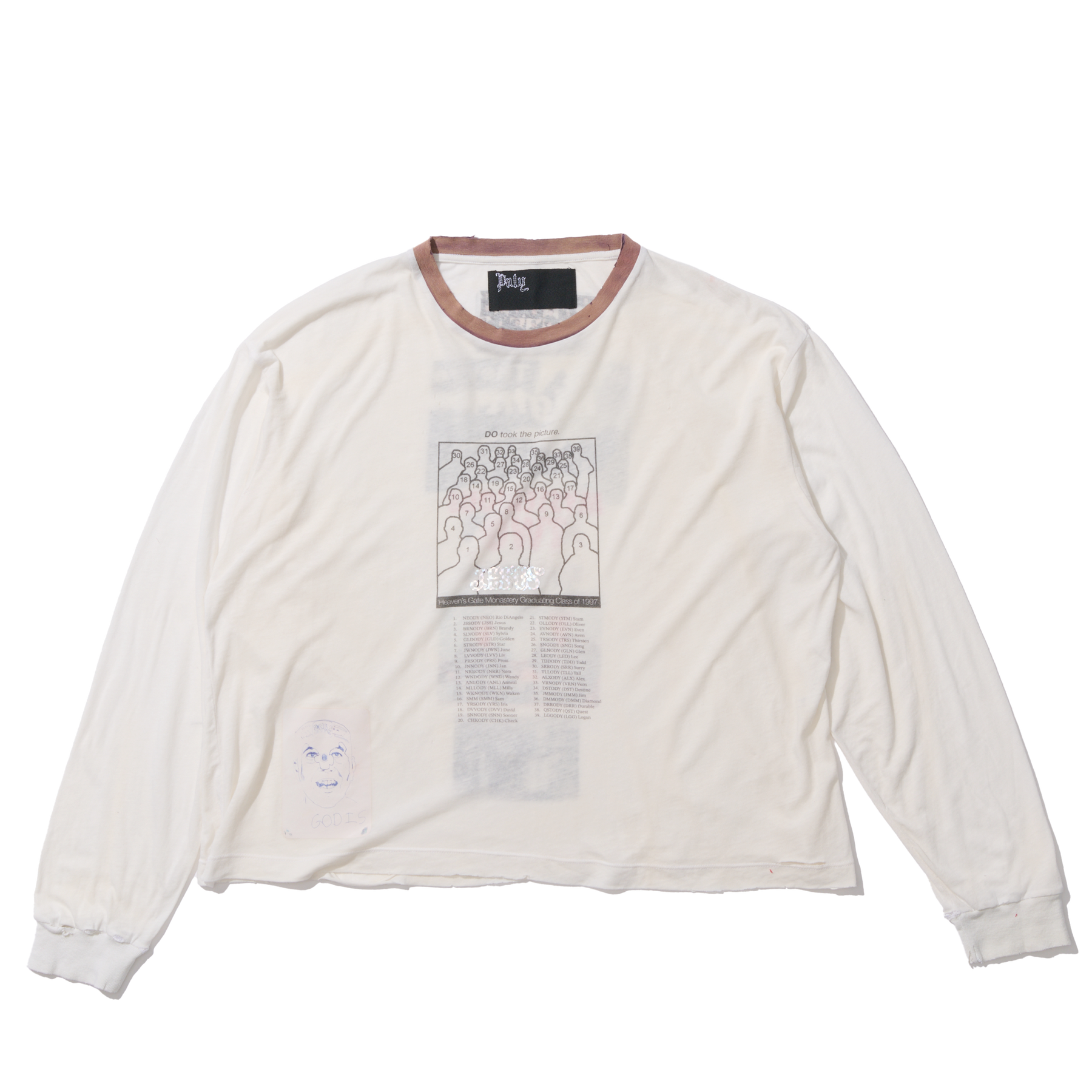 Unisex Boxy cropped fit Vintage textured jersey fabricHeavy enzyme wash process Areas of hand distressing at neck, hems, & body Print/embroidered art100% cotton