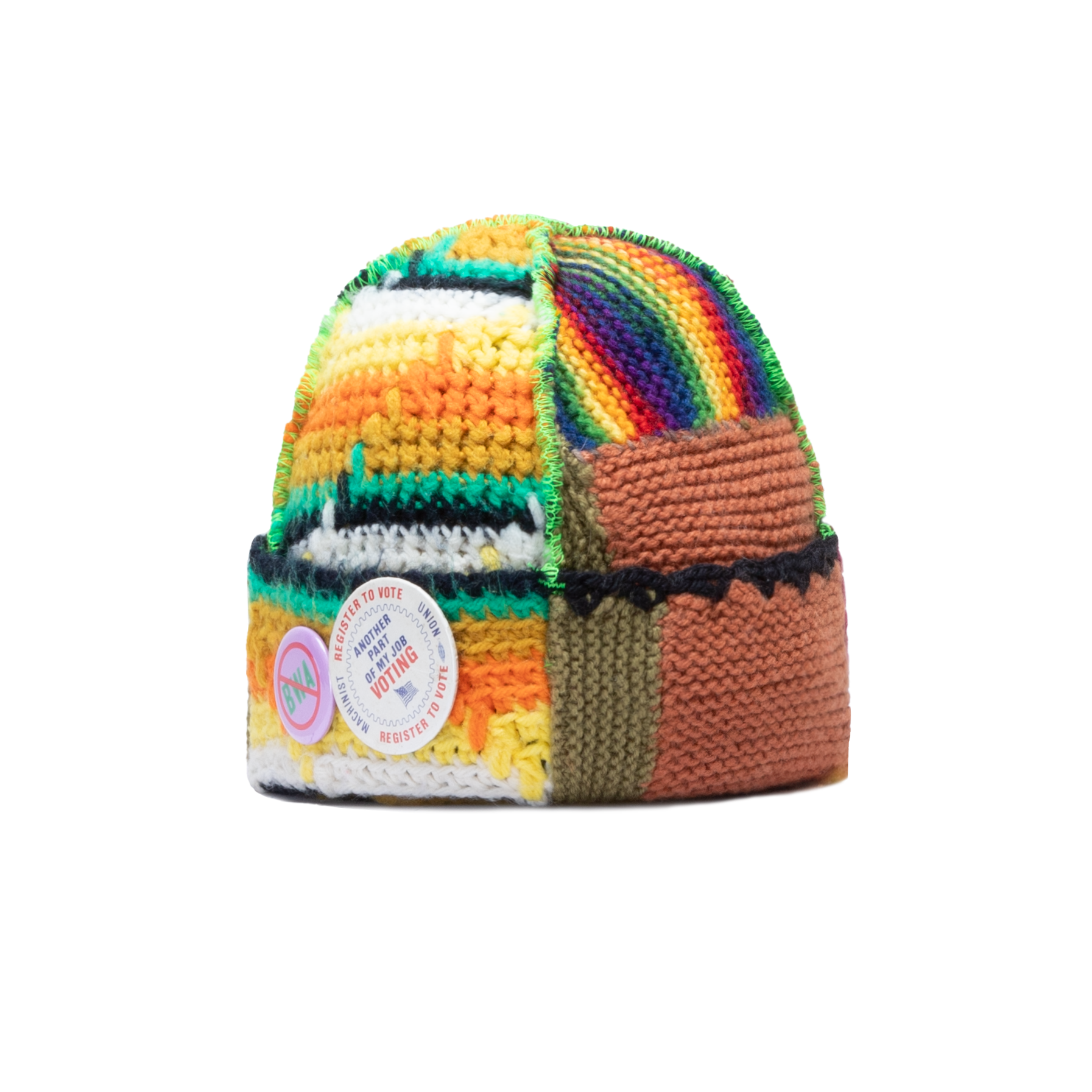 Each Chapeau beanie is built with a one-of-a-kind four paneled construction. All pieces are created using sourced and re-homed vintage hand-knitted Afghan blankets, hand-picked by the *BWA team.